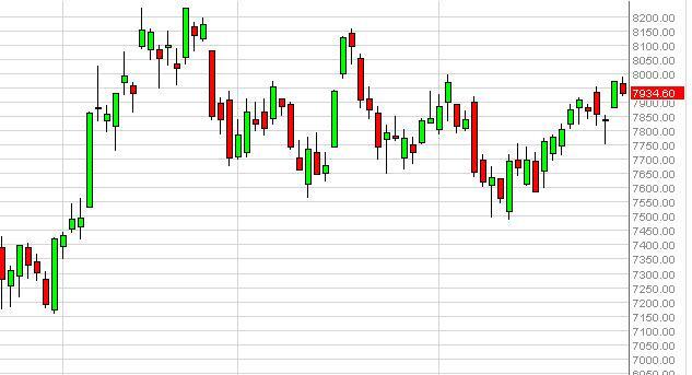 The Spanish index barely budged during the Friday session as we continue to bounce into the €8000 level. This area should be significant resistance, and as a result we are not interested in buying at this point in time. However, on the other side we do see significant support at the €7800 level as well. This looks like a market that is boxed in, and will find it very difficult to make a serious move in one direction or the other. With that being said, this is one of her least favorite markets currently, and will be avoided.