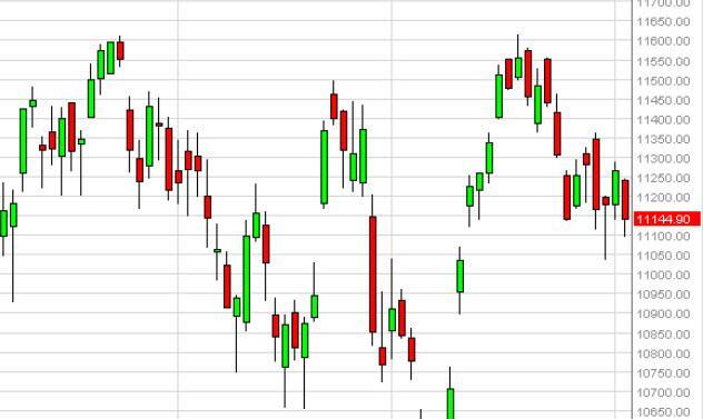 The Ibex as you can see fell during the course of the session on Tuesday, testing the 11,100 level. We believe that there is a significant “floor” at the 11,000 handle, so we think that the buyers will step back into this market again and again order to pushes market higher eventually. We believe that the Ibex will be supported, and therefore we are buyers going forward. We believe that the market is probably going to reach towards the 11,600 level given enough time, and as a result we are buyers only in this marketplace.