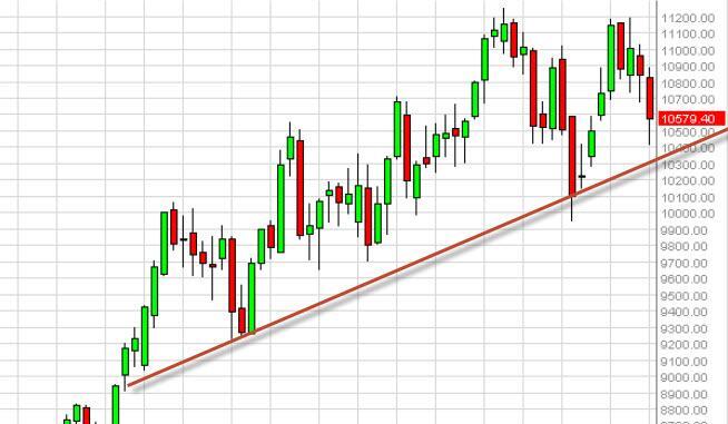 The IBEX as you can see fell rather hard during the course of the week, but found enough support at the €10,400 level to bounce and show signs of buying