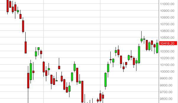 The Ibex went higher during the course of the day on Monday, after initially gapping lower. With that being the case, it looks as if the market will continue to consolidate in this general vicinity, and with that we feel that it’s only a matter time before the markets take off to the upside so therefore we are only buyers at this point in time. We have no interest in selling, and think that the 10,250 level below should continue to offer a bit of a floor. Pullbacks continue to offer buying opportunities as well.