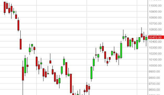 The Ibex initially fell during the course of the day on Friday, but found enough support near the €10,300 level to turn things back around and form a nice-looking hammer. The hammer of course is a bullish sign, so we feel that the market will continue to go higher. However, this is more or less a situation that remains choppy, so this is going to be more of a grind higher than anything else. We have no interest in selling, but recognize that we will have to be patient in our long positions.
