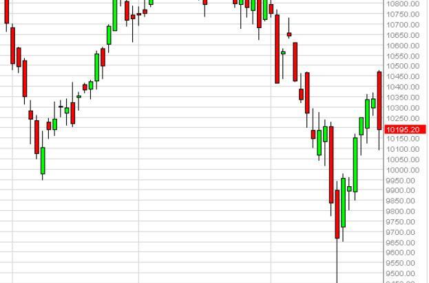 The Ibex gapped higher at the open on Monday, and then fell significantly down towards the €10,100 level. With that being the case, the market looks as if it is going to continue to drop here, as the €10,000 level looms large below. Ultimately, we believe that the buyers will step back into this marketplace, but at this moment it does appear that the sellers have reappeared and taking control for the short-term. We aren’t necessarily interested in selling at the moment though, because we believe that the €10,000 level will in fact offer support.