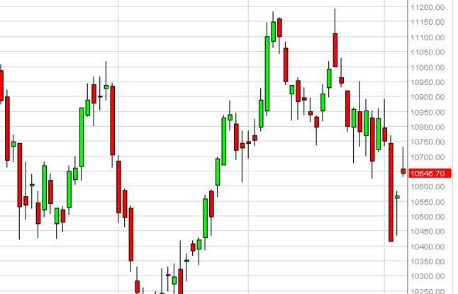 The IBEX gapped higher at the open on Monday, and then went all the way towards the €10,750 level. Looking at this chart, you can see that we fell