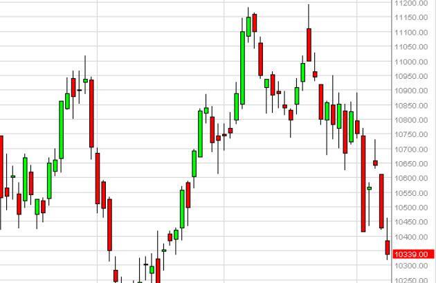 The IBEX as you can see gapped lower at the open on Wednesday, and then turned back around to attempt to break out to the upside but failed. The resulting action ended up forming a shooting star, and that of course is a negative sign. That negative sign suggests that we will continue to drop from here, and quite frankly we feel that the real support is probably closer to the €10,000 level. That being said, we believe that the market probably will drifting lower but recognize that you will have to be very cognizant of the fact that we are getting close to a fairly strong buying opportunity.