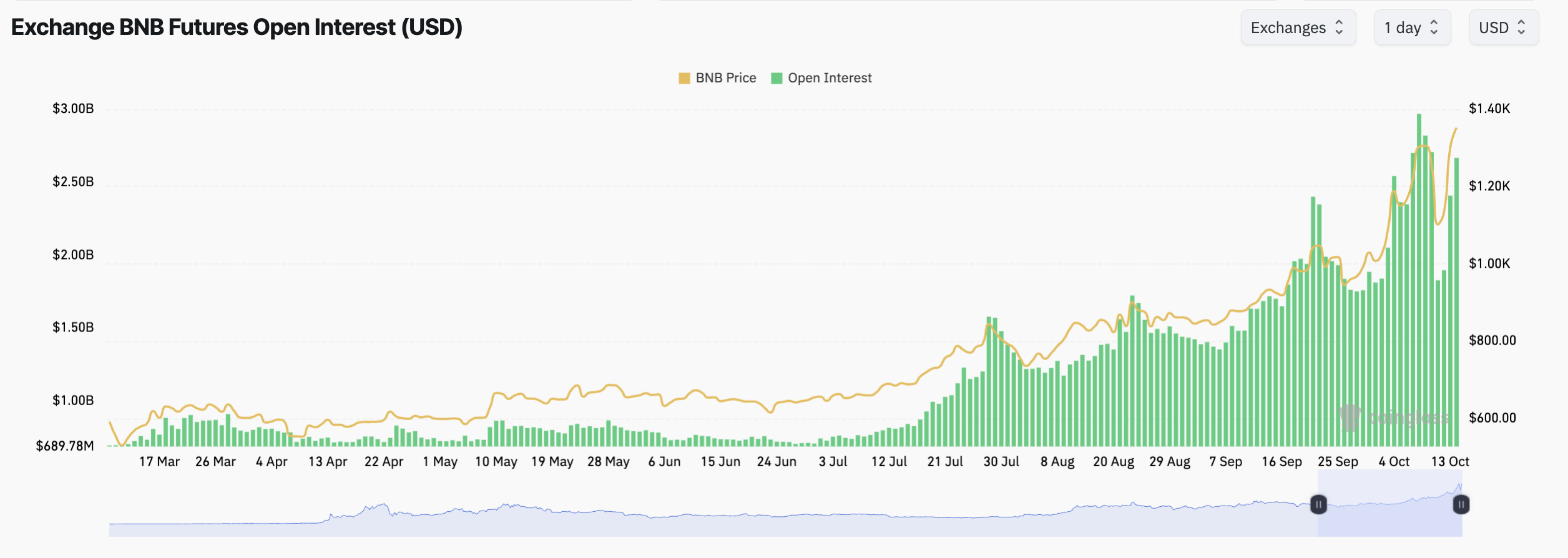 For instance, on the daily chart, BNB is forming a clear bearish divergence between its rising prices and falling relative strength index (RSI), a sign of exhausting upside momentum.