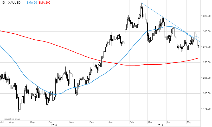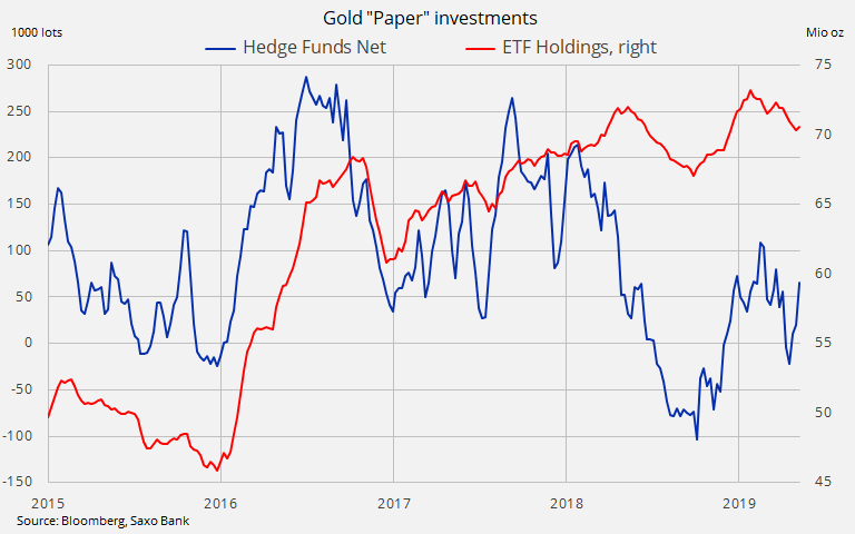 Gold’s lack of momentum despite an escalating trade war, raised concerns about stability in the Middle East, recent stock market gyrations and bond yields near an 18-month low have left potential investors frustrated and sidelined. Last week’s failed attempt only strengthened this hesitancy and while we see no fundamental reason to sell gold the short term direction is likely to be dictated by the potential need from longs to reduce exposure further.