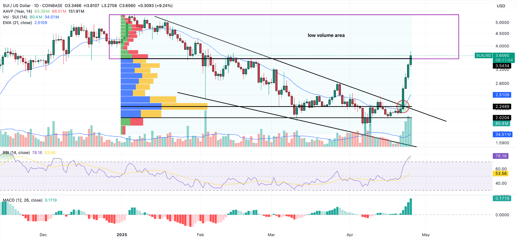 In a previous article, we highlighted that a break above the $3.5 level could catalyze a move toward SUI’s all-time high of $5.35.