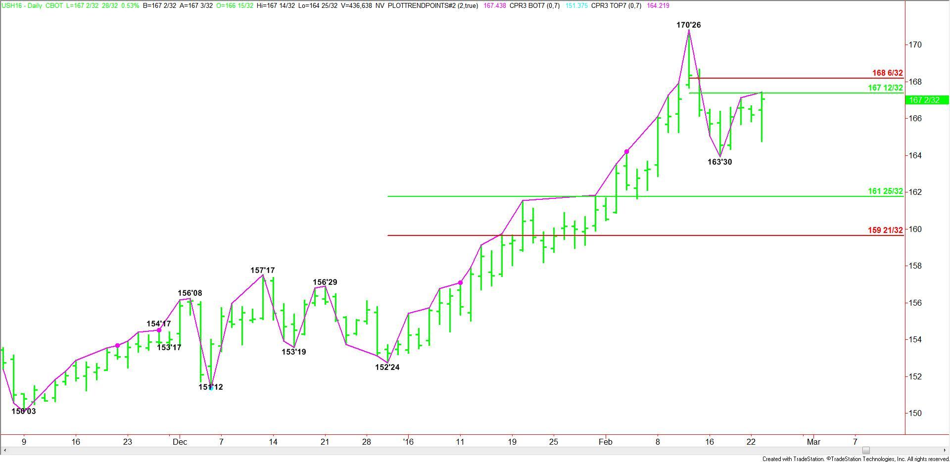 Although the major U.S. stock indices have been firming for several sessions, the price action by the March U.S. Treasury Bond futures suggests the selling pressure in the equities markets may not be over and that they may be setting up for a resumption of the downtrend.