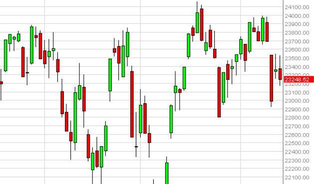 The MIB as you can see initially tried to rally during the course of the session on Friday, and then turned back around to form a shooting star. We also formed a shooting star on Thursday as well, so it appears that we will probably pull back from here. However, there is also a significant amount of support just below, and we have been consolidating just below the major resistance barrier in the region of 24,000 to try to build up enough momentum to break out to the upside and continue the longer-term uptrend.