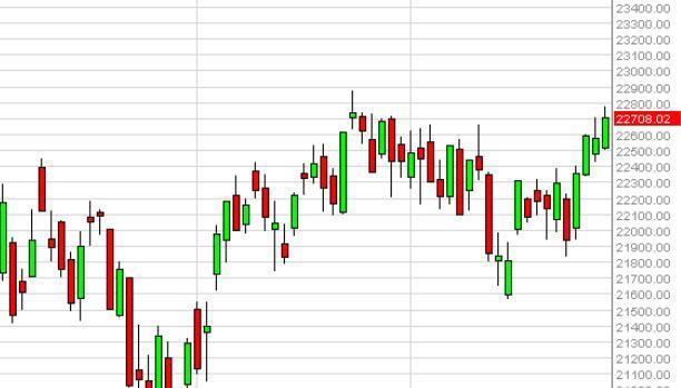 The Milanese exchange rose during the day on Monday, breaking the top of the shooting star from Friday. We believe that this market will continue to try to struggle to the upside. We do recognize that this market has quite a bit of upward pressure, but we are reaching areas of significant resistance as well. It is because of this that we prefer to stay on the sidelines at this point and await a move above the 23,000 level in order to start buying again. Pullbacks could be used as buying opportunities but only on supportive daily candles.