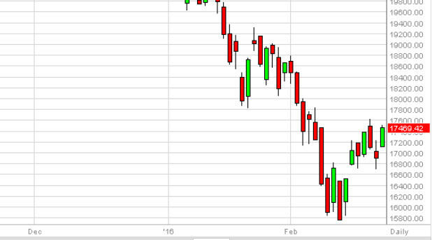 The MIB gapped higher at the open on Monday, testing the 17,500 level. Ultimately, if we can break above the top of the range from last week, we would be