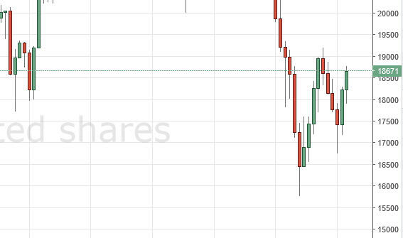 The MIB initially fell during the course of the week, testing the 18,000 level for support. We found it there, and then turn right back around to reach towards the 19,000 handle. If we can break above the 19,000 level, the market should continue to go much higher. It looks as if we are going to do that, but it’s not until we clear the 19,000 level that we feel a longer-term signal is possible to take in this market. We have no interest in selling the MIB at the moment.