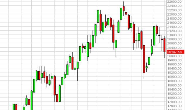 The MIB as you can see fell during the bulk of the week, but found the 20,000 level as supportive, and as a result the market did slow down a little bit to the downside. However, we have a significant amount of support below there all the way to the 19,000 level, so we are very cautious about shorting this market, but do recognize that we could very easily go to the 19,000 handle. A supportive candle between here and there would in fact be a buying opportunity, and with that we are waiting to see what happens next.