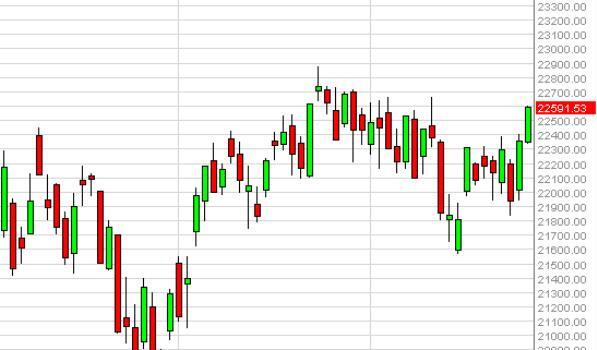 The Milanese index rose during the course of the day on Thursday, as we continue to see bullish pressure. We believe that this market should then reach towards the 22,900 level, and that pullbacks at this point in time should be buying opportunities going forward. We have no interest whatsoever in shorting this market, mainly because of all of the bullish pressure that we have seen underneath and essentially near the 22,000 level. Given enough time, we should break above the 23,000 level and continue to go much higher. We have a longer-term target of 24,000 at this point.
