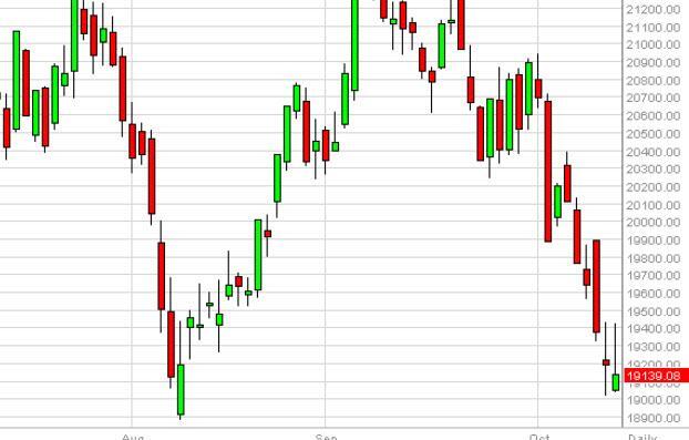 The MIB as you can see had a back-and-forth session during the day on Monday, but ended up forming a fairly bearish looking shooting star that sits right on the 19,000 handle. Because of this, we feel that the market could very easily fall from here, and a break of the 18,900 level would have us selling this market as it would be a confirmed breakdown. On the other hand, if we broke back above the 19,500 level, we might be willing to go along with a small position at that point in time.