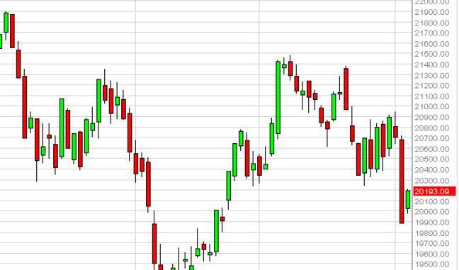 The MIB gapped a little bit higher at the open on Friday, and then closed just below the 20,200 level. The fact that the market bounced off of the 20,000