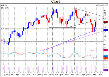 Mini Russell 2000 December contract Daily Forecast - 28 October 2014Mini Russell unable to beat 1120 for the last 3 sessions as we become overbought. Sooner rather than later we expect the bear trend to resume. Downside pressure today targets 1110/09 then good support at 1101/00. This held the downside perfectly yesterday & could do again today. Failure here however then targets 1095 & 1089/88. A good chance of a low for the day if we fall this far but longs need stops below 1084. Just be aware that a break lower targets 1081/79.