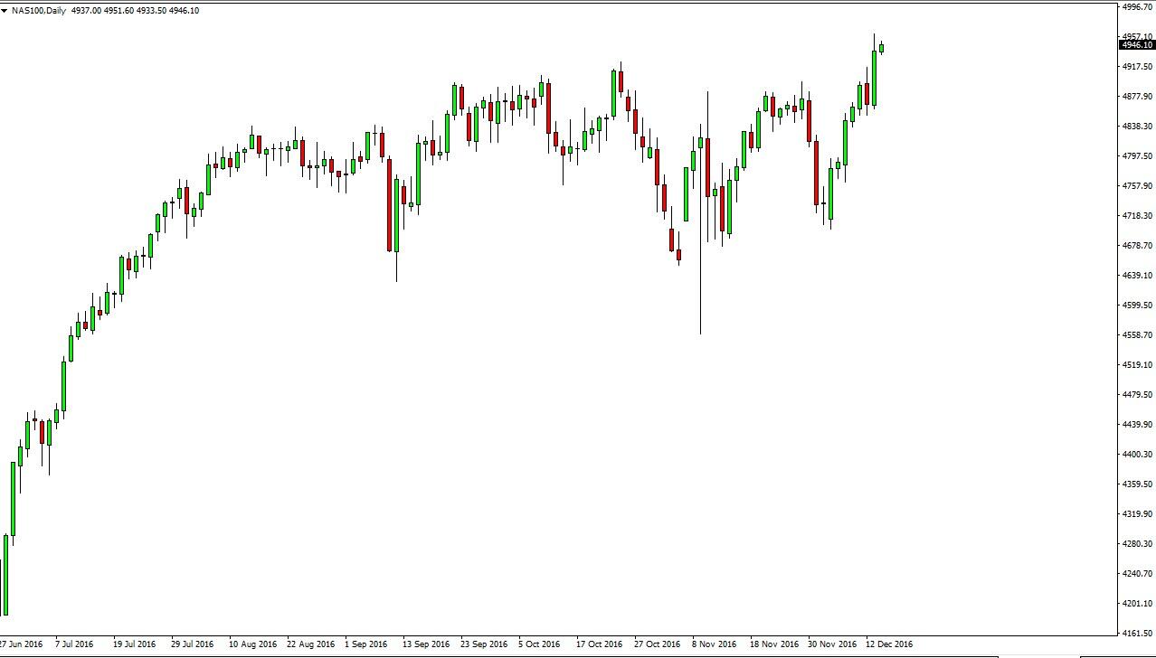 The NASDAQ 100 had a slightly positive session on Wednesday as the market now looks to reach towards the 5000 handle. To break above there is very