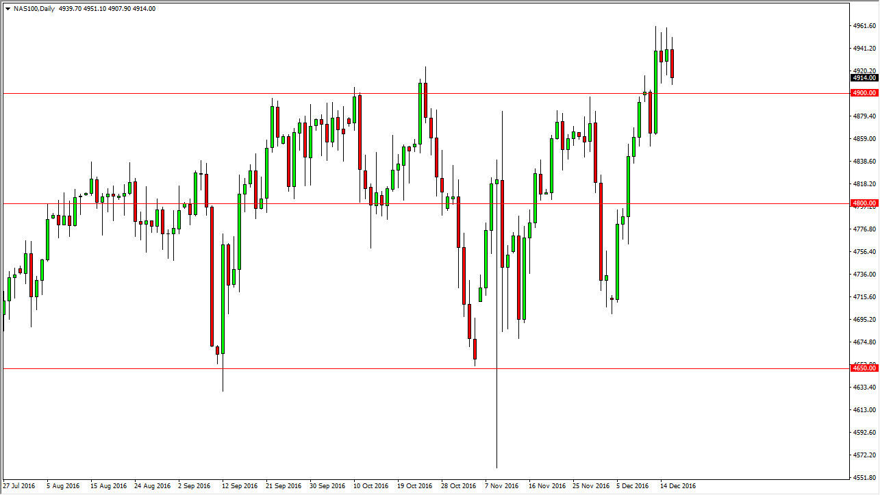 The NASDAQ 100 fell on Friday as we continue to grind sideways in general. The 4900 level below continues to be massively supportive, as it was previously resistive. At this point, if you that the market can continue to go higher, and with this I am waiting for a bounce off of the 4900 level, or perhaps some type of supportive candle in order to go long. I have no interest in selling, and even if we break below the 4900 level, and think there is more than enough support below to cause the market to rise over the longer term anyway.