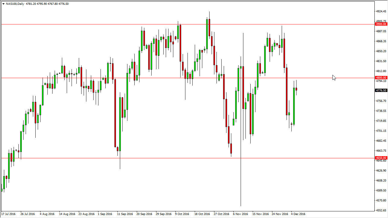 The NASDAQ 100 went back and forth on Tuesday, as we continue to see quite a bit of volatility. The 4800 level above is going to be massively resistive,