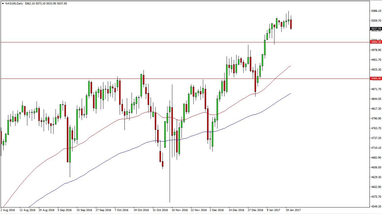 The NASDAQ 100 initially tried to rally during the session on Monday but turned around to form a slightly negative candle. I still see a massive amount of support just below at the 5000 region, so I believe it’s only matter of time before the buyers come back and get aggressive again. I’m waiting for that to happen, and I have no interest whatsoever in selling this market and I believe it is in a very strong position and of course will lead the rest of the US indices higher. Ultimately, I believe that we reach towards the 5100 level.