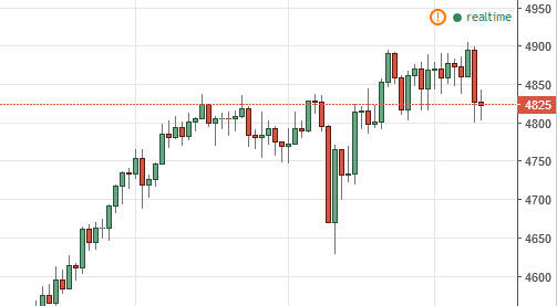 The NASDAQ 100 fell initially during the day on Wednesday, testing the 4800 level for support. We did find it there, and now it looks like we’re going to reach towards the 4900 level below. With this being the case, I think that the markets continue to go back and forth and as a result I think that eventually will break out to the upside. Once we do, we will more than likely be reaching towards the 5000 level, and perhaps even higher than that. At this point in time, it’s very likely that the buyers will return again and again.
