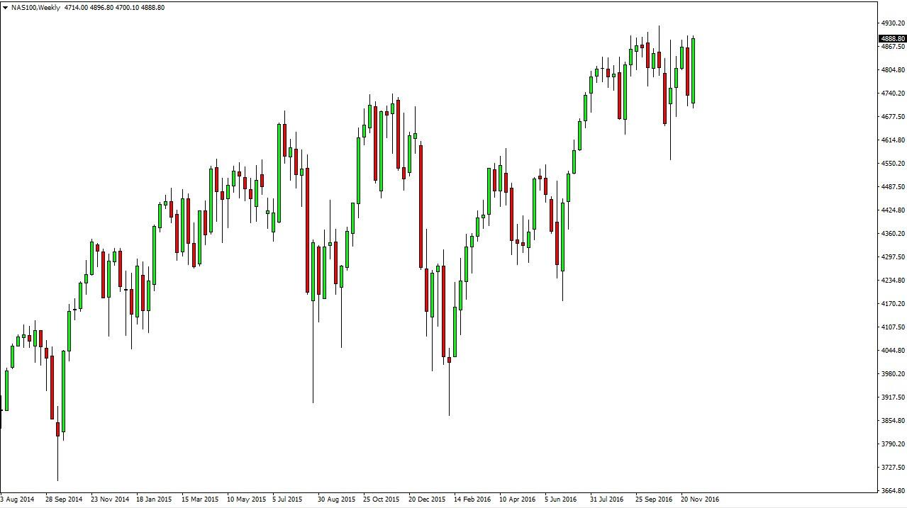The US markets all look very bullish, and the NASDAQ 100 seems to be following suit now. As we find ourselves closing towards the 4900 level, a break