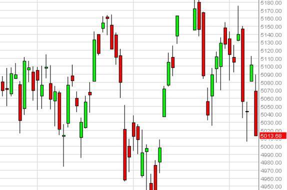 The NASDAQ as you can see initially gapped lower at the open on Tuesday, and then drove even lower. However, we are getting close to the 5000 level which should be the support that the market looking for. After all, it is a large, round, psychologically significant number. There was a gap there, so it’s probably only a matter time before the buyers get involved again. We have no interest in selling, because quite frankly there’s more than enough support below from the longer-term charts in order to keep us from selling at this point in time.