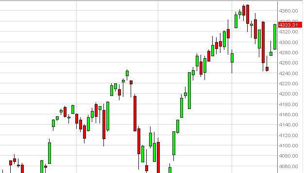 The NASDAQ rose during the session on Tuesday, breaking much higher in gaining 1.25% for the day. This market looks very healthy, and we believe that it’s only a matter of time before the breakout of the recent resistance area, and as a result we are bullish. We think short-term pullbacks will continue to offer buying opportunities going forward, and we believe that this market is going to head towards the 4500 level given enough time. We have no interest in selling this market, and believe that the 4000 level is the absolute bottom of the market.