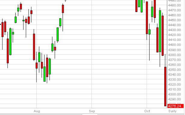 The NASDAQ gapped lower at the open on Friday, and then fell off of a cliff. We closed at the 4276 level, and as a result it appears that we will continue