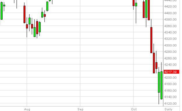 The NASDAQ as you can see gapped lower at the open on Thursday, but turned back around to go much higher. The positive candle of course is a good sign going forward, but we need to clear the 4300 level in order to be comfortable buying this marketplace. Between now and then, we believe that this market will probably bang around, looking for some type of supportive move in order to finally turn things back around as it has been oversold for some time ultimately, we think that buyers return to the NASDAQ and the US stock markets in general after this significant sell off.