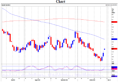 Nat Gas December contract Daily Forecast - 30 October 2014Natural Gas December hitting resistance at 3850/60 yesterday. Failure to hold above 3895 today risks a slide to support at 3770/60 which could hold the downside as the outlook turns more positive in the short term. However longs need stops below 3735 for a test of support at 3710/05. Try longs here looking for a low for the day but with stops below 3690.