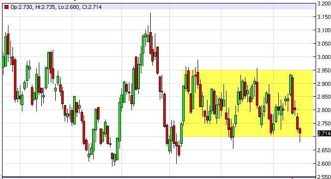 We believe that the $3 level above is massively resistive, just as the $2.65 level on the bottom is massively supportive. With fact, we continue to see the market bang around this area, and therefore until we are told otherwise, by the breaking of the range, we continue to trade this range back and forth. Again though, we would take a long positions with a little bit less risk involved due to a smaller position size. Ultimately, we will break out of this range, and at that point in time we would have to follow that move as it should be significant.