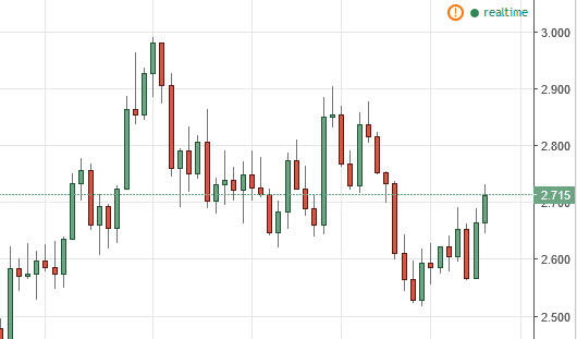 The natural gas markets initially tried to rally during the course of the day on Tuesday, but turned back around to form a bit of an exhaustive shooting star. Because of this, if we can break down below the bottom of the shooting star I feel that the market will drop down to the $2.60 level. If we can break above the top of the shooting star though, the market will ultimately grind its way higher, but that will be the key word here: grind. With that I am much more comfortable selling.