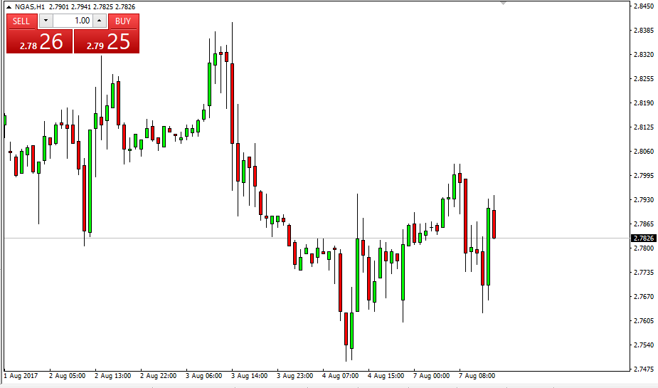Natural gas markets were choppy again on Monday, as we continue to dance around the $2.75 level. The market will probably continue to see volatility as there are a lot of moving parts in the natural gas markets. Longer-term, we always have the oversupply hanging over the market, and I think that there is no way that we are going to get a longer-term buy-and-hold type of scenario. Because of this, I am a seller rallies, believe that we will go down to the $2.75 level, breaking below there to go to the $2.65 level and then eventually the $2.50 level. Natural gas is by far the market that I am the most bearish of, and realize that the United States alone has over 300 years’ worth of natural gas proven reserves in the ground.