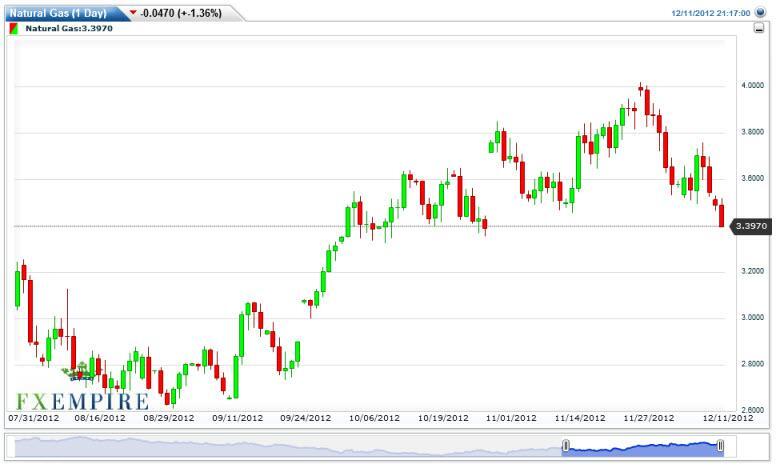Looking this chart, it makes a fairly straightforward trade when you have a situation like this. If we can manage to break down below the $3.35 level, at that point in time there would be no real doubt as to whether or not support had just been violated. At that point time, I feel that this market will attempt to reach the previous gap which is just under the $3.00 level.