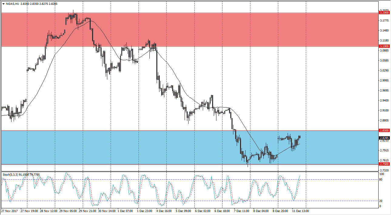 Natural gas markets gapped higher at the open on Monday, pullback to fill that gap, and now look likely to test the $2.85 handle. Breaking above there would be a very bullish sign, and it should send this market to the top of the consolidation area.