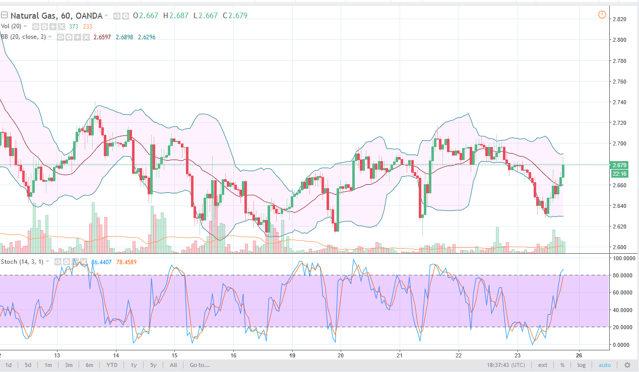 Natural gas markets initially cratered during the trading session on Friday, reaching down to the $2.63 level. We found a bit of support in that area though and bounce significantly to form what should be a hammer for the day. That’s a good sign, and quite frankly I think that is only a matter of time before we rally. I think that ultimately the markets will rally, but the consolidation that we are and should continue to put bearish pressure on this market. After all, the markets have a major oversupply issue, and I believe that the $3 level above would be massive resistance. Eventually, we will get a nice rally that we can take advantage of, and I am willing to sell at the first signs of resistance.