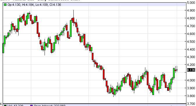 The natural gas markets as you can see tried to rally during the course of the day on Wednesday, but found the $4.20 level to be a bit too resistive, turning this market back around in forming a shooting star. The shooting star of course suggests that the market is ready to fall from here, and we believe that a pullback from here should send this market down to the $3.90 region as it is the bottom of the consolidation area that we have been in for some time. However, if we broke out above the $4.20 level, we feel that this market would in fact go to the $4.40 level.