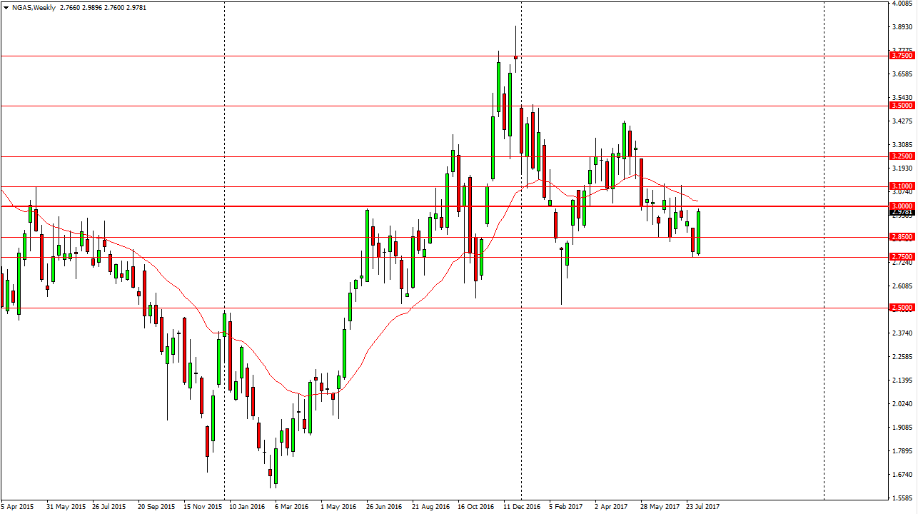 Natural gas markets exploded to the upside during the week, testing the $3.00 level. This is a market that sees a significant amount of resistance at the