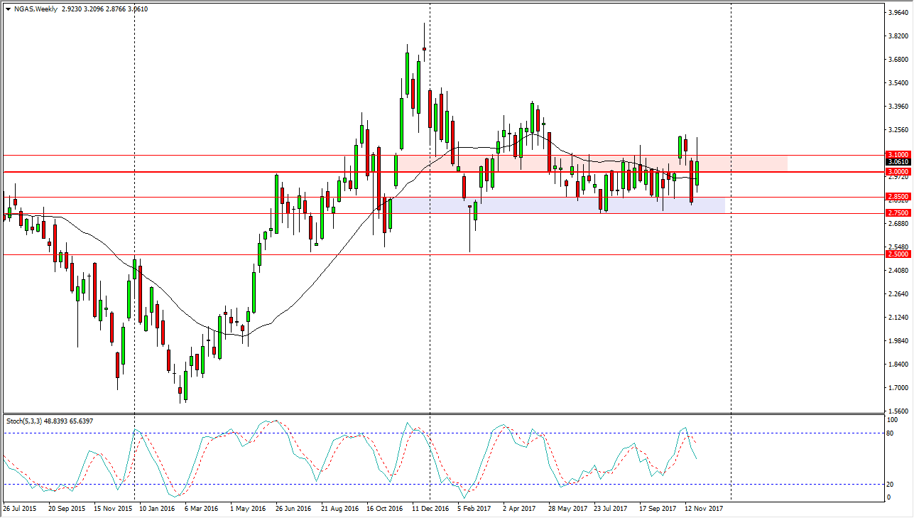 I believe that the $2.75 level is massively supportive though, but a breakdown below there should send the market to the $2.50 level word is even more supportive. If we can break above the Over the last couple of weeks, it could be the move higher that we tend to get towards the end of the year, but that’s a short-term phenomenon, as by the time the middle of January comes into play, we will often see sellers come back in and pushing lower. We have far too much natural gas out there to think that rallies will be sustainable for more than the occasional pop in pricing.