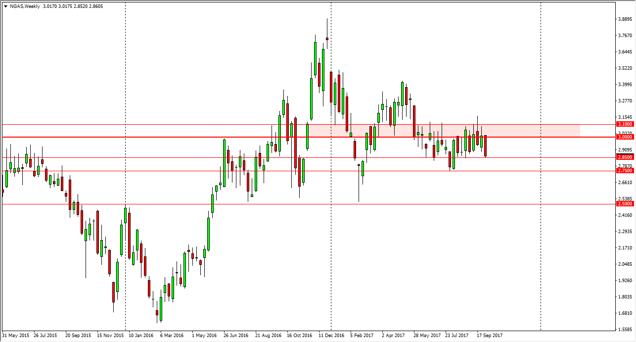 Natural gas markets had a very negative week, breaking below the $3 level again, and slamming into the $2.85 level, an area that has been rather