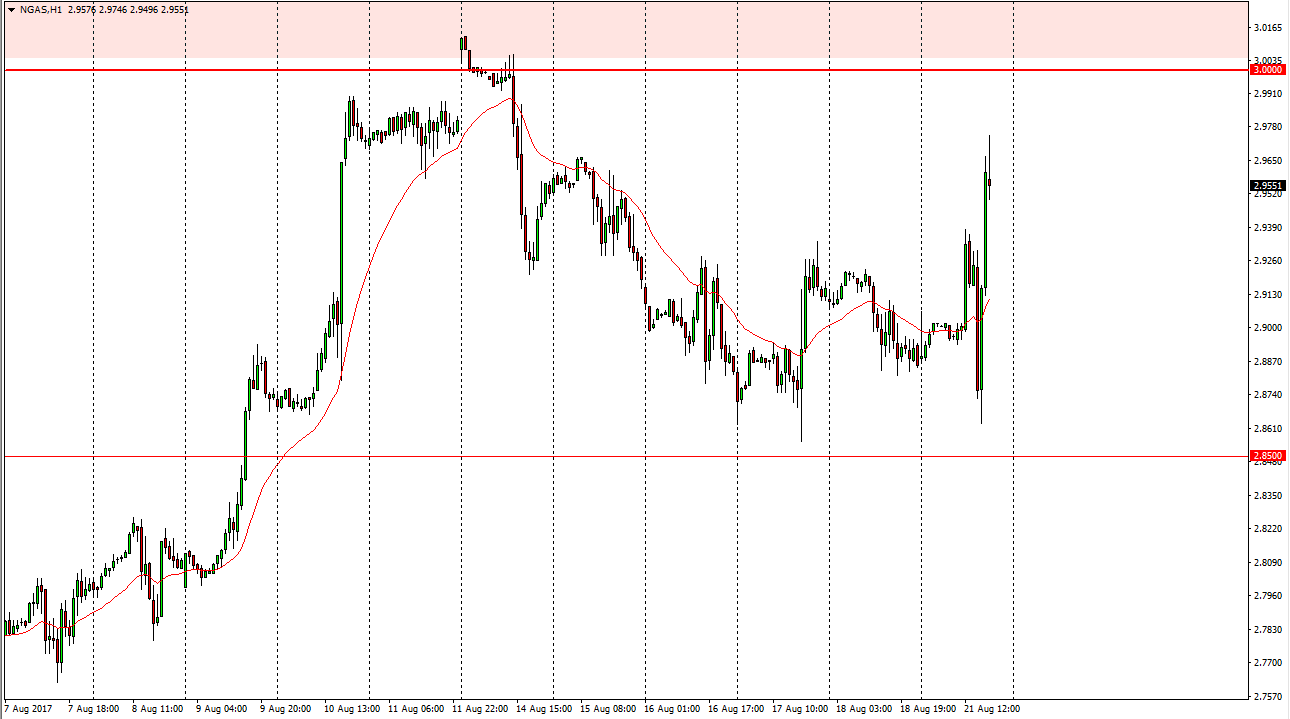 The natural gas markets had a very volatile session on Monday, as we initially rose towards the $2.93 level, but then turned around to fall rather