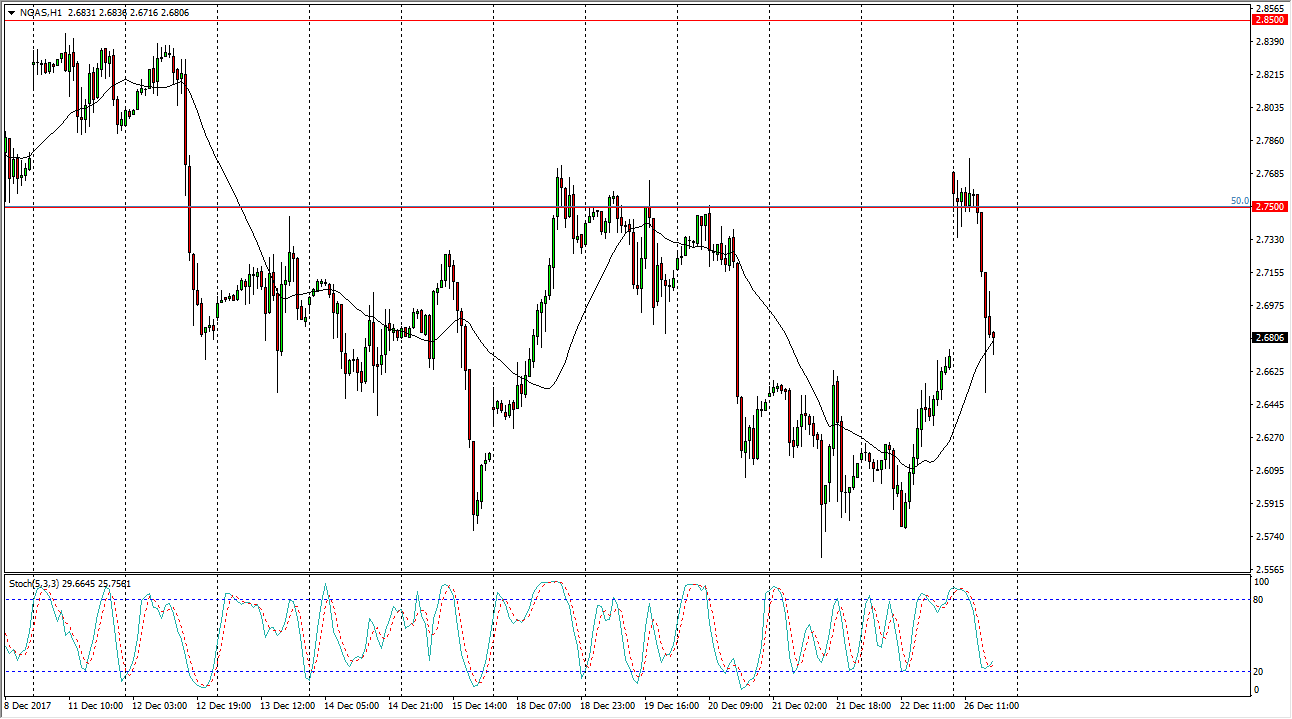 Natural gas markets gapped higher at the open on Tuesday, clearing the $2.75 level, but then rolled over almost immediately to fill that gap. The question is now where do we go from here?
