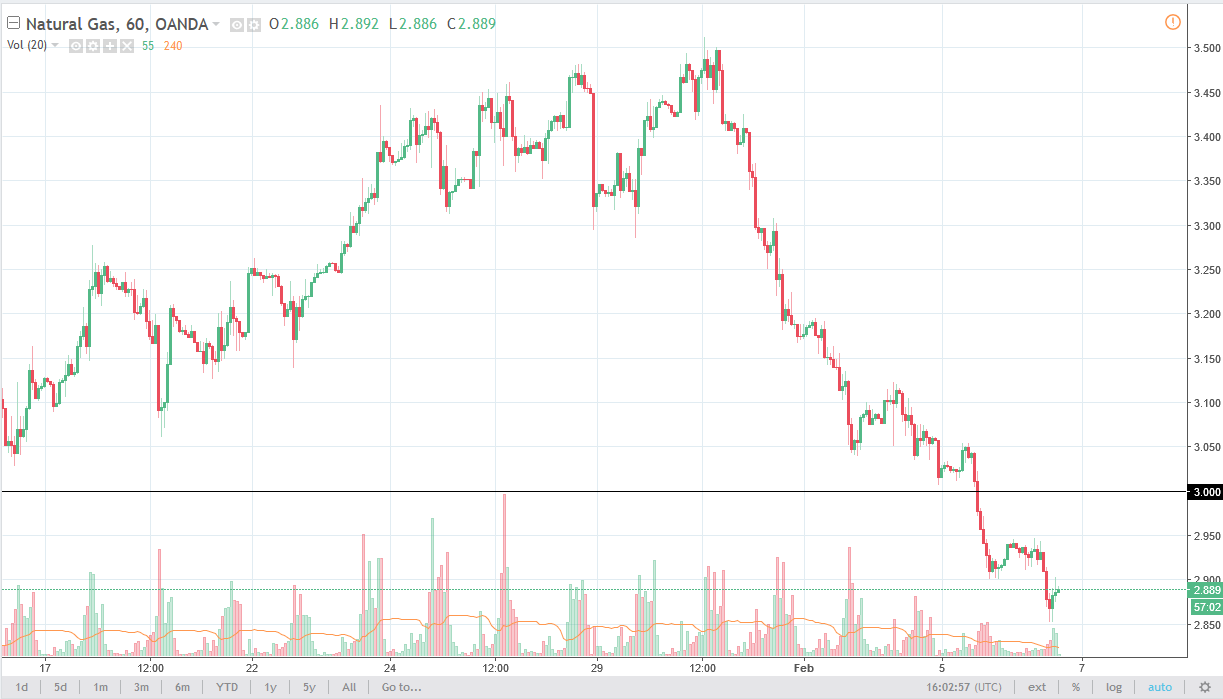 Natural gas markets broke down on Tuesday, as we continue to see selling in general. The market is below the $3.00 level, which of course is a very negative sign, and the fact that we continue to drop suggests that we are starting to enter a bear market again.