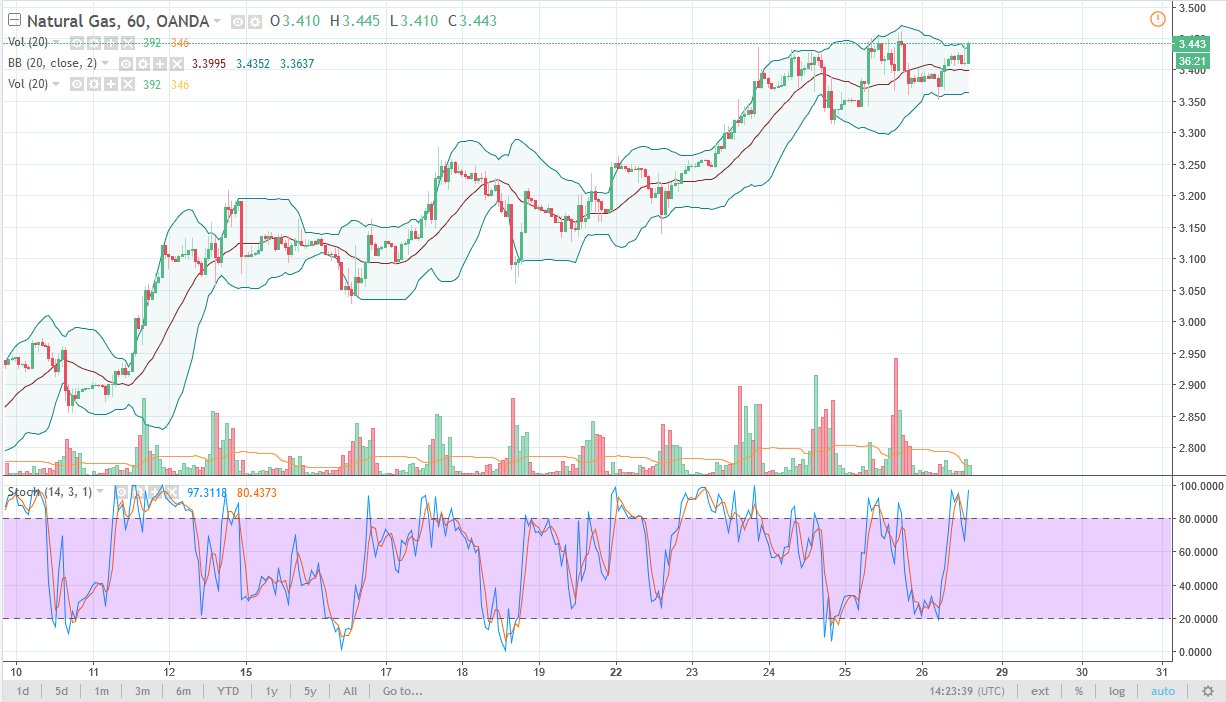 Natural gas markets continue to be very bullish during the day on Friday, but we have almost no volume, so I would be a bit concerned about trying to buy here. Beyond that, temperatures in the northeastern part of the United States are likely to get warmer rather soon, and that will certainly drive down a significant amount of demand for this market. The market would offer a nice longer-term selling opportunity if we can’t break out to the upside, and I think the next obvious barrier will be the $3.50 handle.
