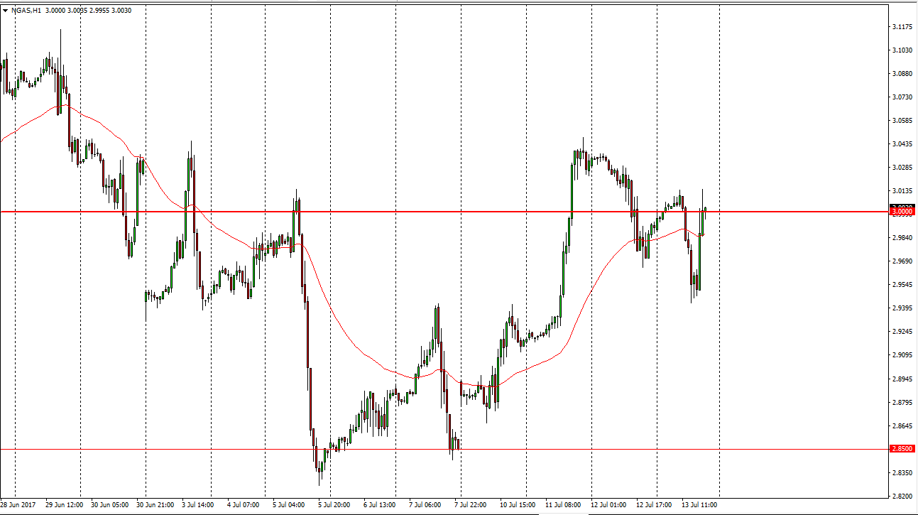 Natural gas markets went sideways, and then fell significantly, only to turn around and bounce towards the $3.00 level as well. This is an area that is