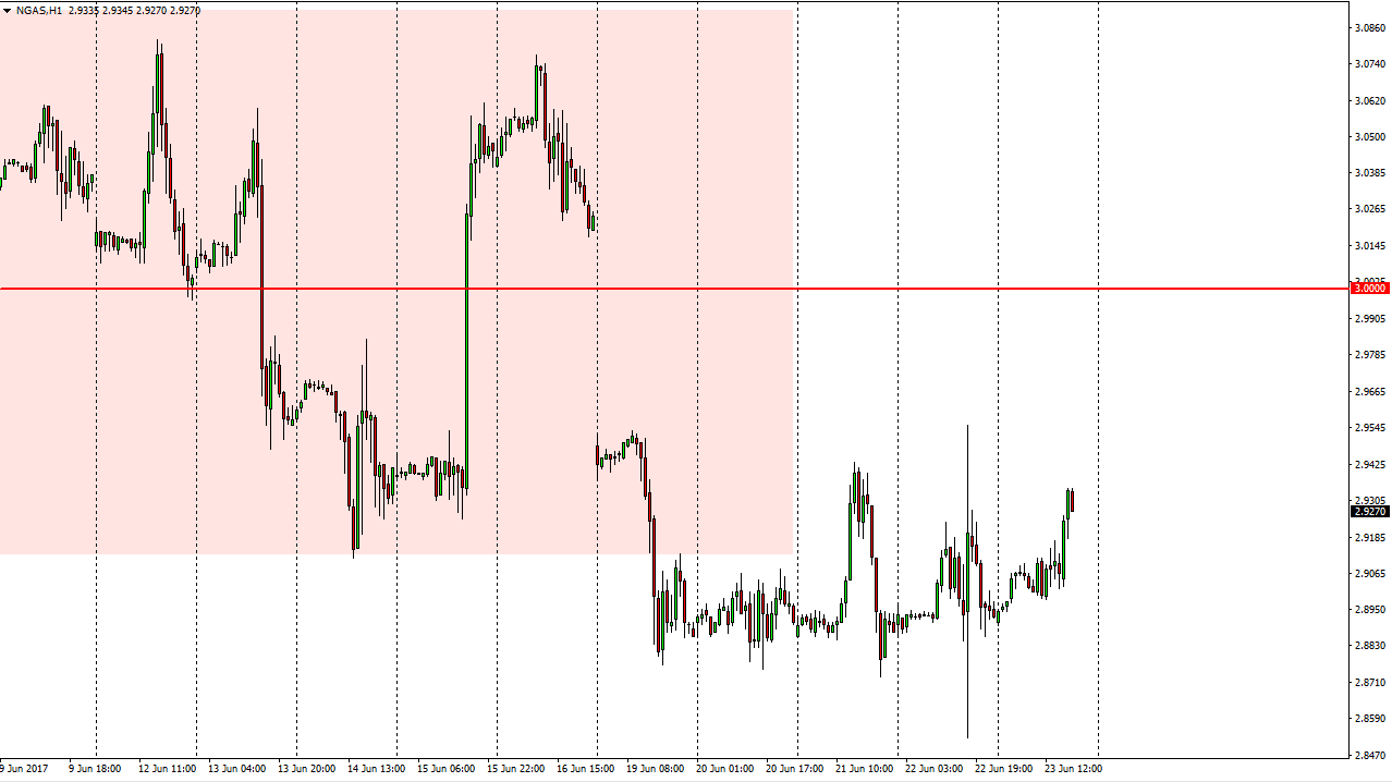 Natural gas markets rallied again on Friday, but we continue to see sellers jump into this market every time it does. There is a big gap above, as Monday was so bearish. The $3 level above is massively resistive, and because of this I think that every time we rally, the sellers will get involved. I think that an exhaustive candle could be a nice opportunity to start selling, as we would then go down to the $2.87 level, and a breakdown below there could send this market down to the $2.75 level. There is a significant amount of bearish pressure and the natural gas markets, mainly because of the oversupply that we have seen for so long. Ultimately, this is a market that continues to suffer from a lack of demand as well. The oversupply of natural gas continues to be an issue as the United States has more than enough natural gas to not only power itself, but the rest of the world.