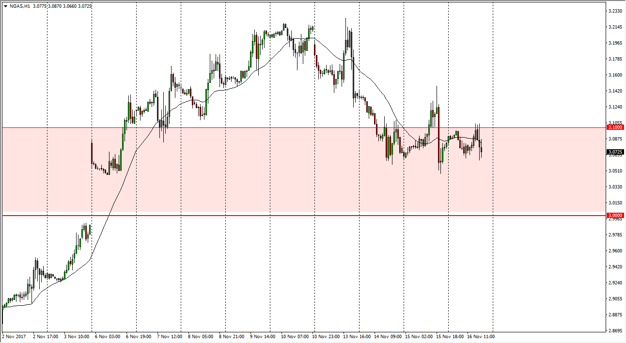 Natural gas markets have continued to go sideways in general, showing signs of resistance at the $3.10 level, an area that has been important in the past.