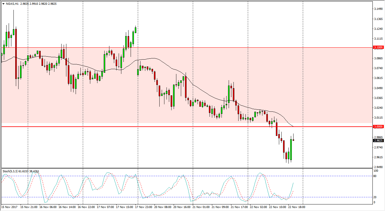 The natural gas markets went sideways initially on Wednesday, but then broke down below the $3 level. We dropped to the $2.95 level, before bouncing, and